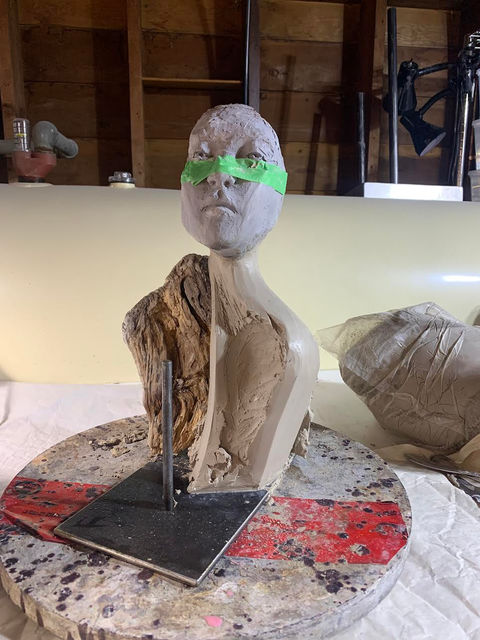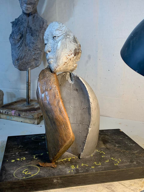 Some fun studio shots of the sculpting process, from clay to silicone mold to cement or bronze casting.